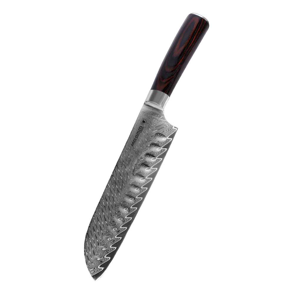 Viele Köche lieben das Santokumesser! Unser 7-Zoll Damaskusstahl-Santokumesser ist ein wahres Allround-Talent in der Küche: Das "Santoku" eignet sich perfekt zum Schneiden, Zubereiten und Bearbeiten von Fleisch, Fisch und Gemüse. Das abgerundete Ende sorgt für mehr Sicherheit, und die Schneide ist scharf und äußerst praktisch.